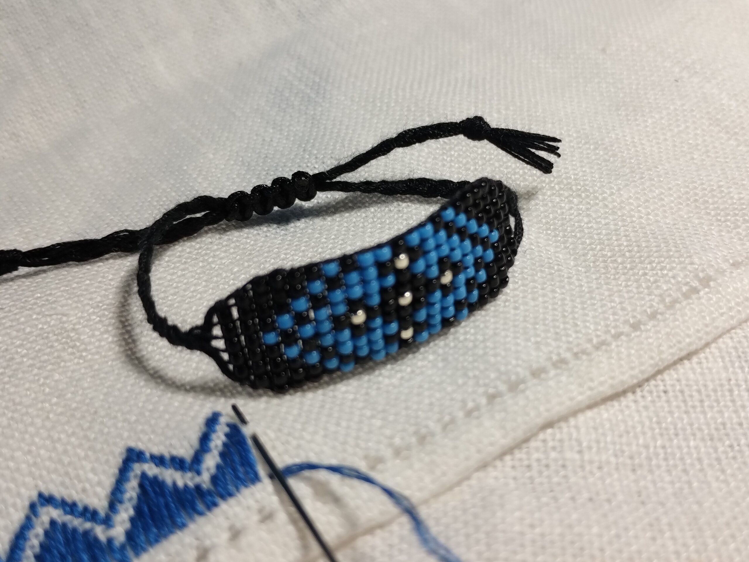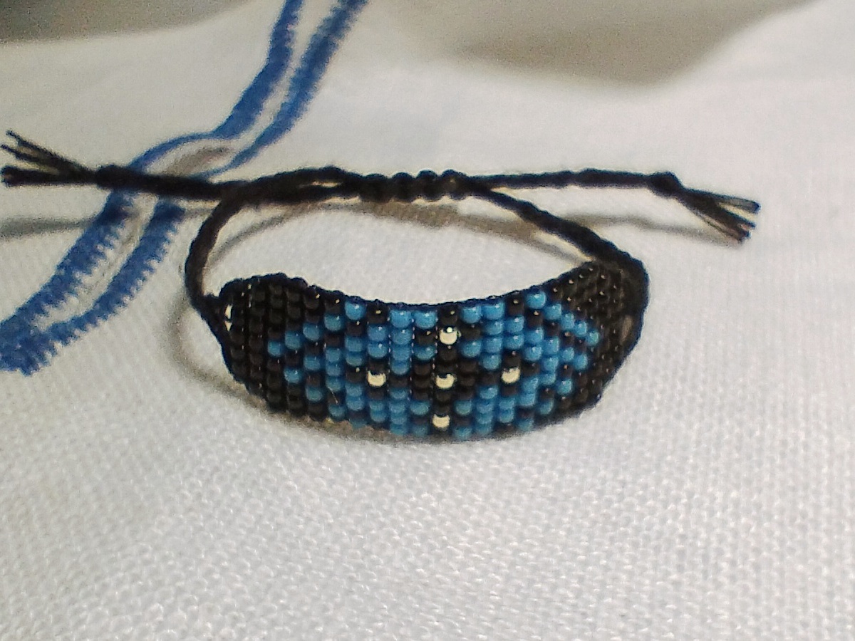 Brăţară de botez pentru băiețel. Motiv tradiţional cruce, cu scop de protecție, țesut foarte fin.