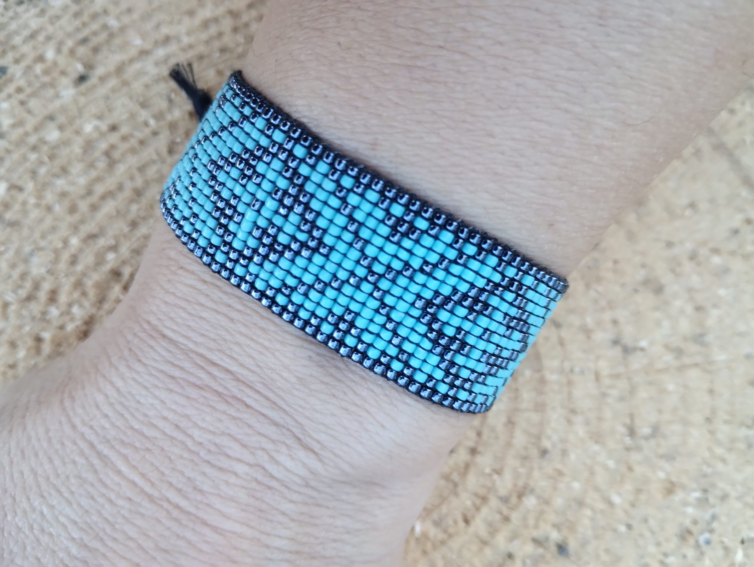 Brăţări cu mărgele fine Brățările cu motive tradiţionale „Dar cu dor” din această categorie sunt realizate mărgele de nisip de 1,4 mm, cele mai mărunte existente, alese pentru a obţine detalii foarte fine. Mărgelele sunt de fabricație japoneză, au o calitate superioară, în culori vii şi luminoase care nu se șterg în timp iar aţa folosită este deosebit de rezistentă. Spre deosebire de mărgelele normale, aici suprafața produsului dă senzația de fin, de catifelat iar modelele sunt mai detaliate și bogate. Majoritatea lor au motive deosebite de ceea ce se găseşte ca tradiţional la tarabe. Nu sunt reproduceri ale bijuteriilor vechi, ci sunt compuneri noi din motive preluate de pe diverse elemente de artă populară. Câteva brăţări au motive originale. Sunt realizate cu mărgele de calitate, ceea ce se reflectă în ordonarea lor aproape perfectă, care fură privirea. Brăţările „Dar cu dor” sunt ţesute sau cusute. Ţesutul este o tehnică tradiţională românească, în vreme ce tehnica de cusut nu. Aceasta se potriveşte foarte bine elementelor moderne: baze metalice pătrate sau dreptunghiulare ori terminaţii-tub argintate, preponderent din inox. Brăţările cu motive tradiţionale din mărgele „Dar cu dor” sunt potrivite atât la straie de sărbătoare cât şi la ţinute moderne, fiind foarte apreciate de cei care se află peste graniţe şi chiar de către străini, care privesc cu multă admiraţie arta noastră populară. Brățările cu nod reglabil pot fi deschise până la aproximativ 22-24 cm pentru a putea fi introdusă brăţara pe mână, cele cu închidere inox au lungimea de 16-17 cm și 4-5 cm prelungitor. Fiecare brăţară se livrează pe cartonaş-suport sau în săculeţ organza, ori contracost, în cutie cu suport special, disponibile în categoria Ambalaje.