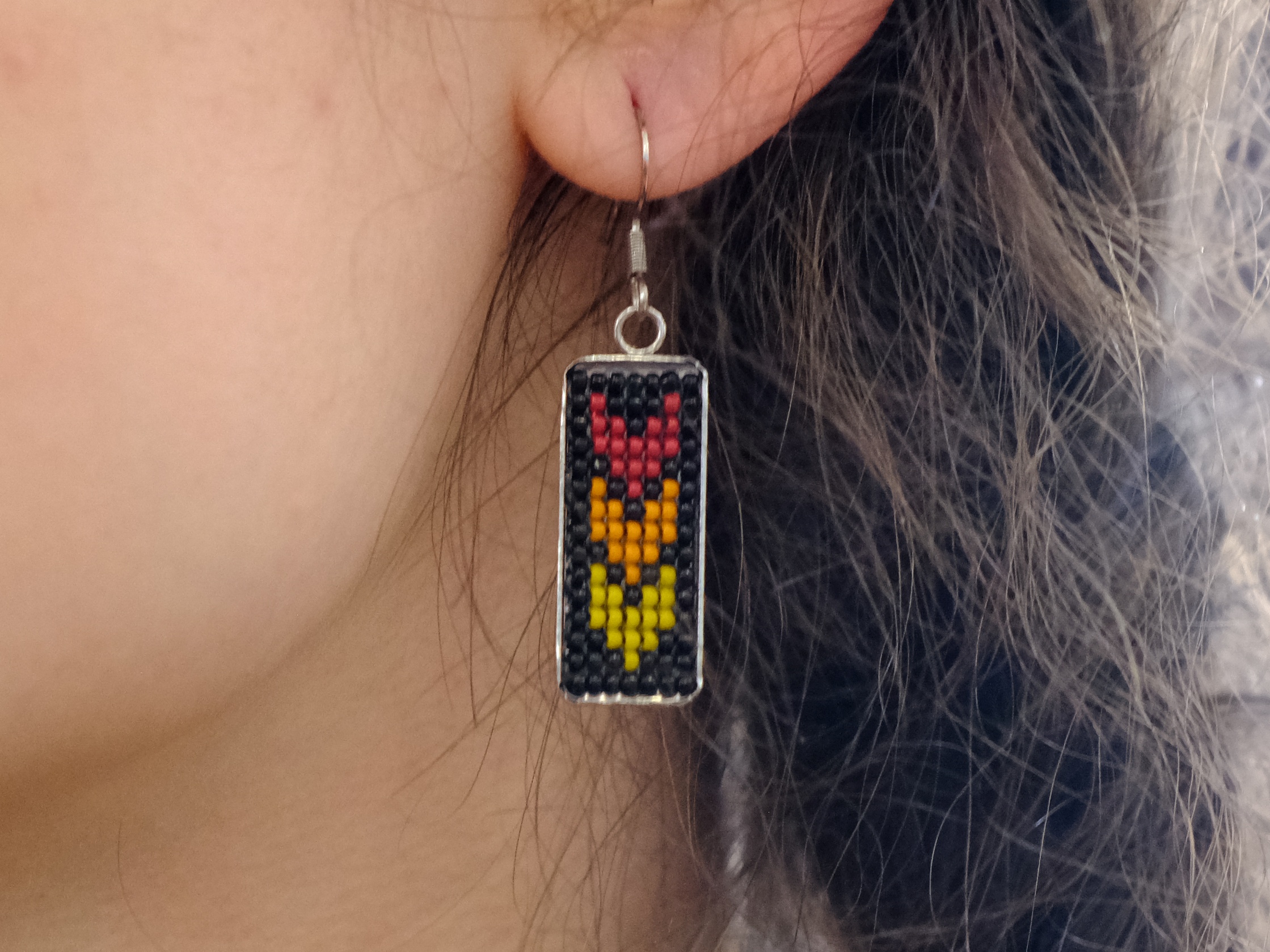 Cercei cu motive tradiţionale din mărgele cusute manual, inserate în baze din inox. Pentru fiecare model de cercei există sau se poate realiza pandantiv, brăţară din inox sau brăţări ţesute asortate. Există opțiuni de set cercei și pandantiv, unde lănțișorul este oferit gratuit. Tortiţele cerceilor sunt de asemnea din aliaj inoxidabil. Motivele şi tehnica folosită, precum şi ansamblul motiv din mărgele - bază metalică sunt încă rar întâlnite şi reprezintă piese deosebite şi foarte apreciate. Sunt realizate cu mărgele de calitate, foarte mărunte, numite foarte reuşit "mărgele de nisip". Calitatea se reflectă în ordonarea lor aproape perfectă, care fură privirea. Culorile mărgelelor nu se şterg în timp iar aţa folosită este deosebit de rezistentă. Aranjarea mărgelelor face ca suprafaţa produsului să se simtă precum un material textil. Această senzaţie particulară poate crea dependenţă :). Bazele metalice de formă pătrată sau dreptunghiulară sunt din două categorii de aliaj: baze inoxidabile şi aliaj argintiu "argint tibetan". Motivele încastrate în pandantivele cu elemente metalice sunt din mărgele foarte fine. Acestea se potrivesc de minune la ţinute clasice sau elegante. Aceşti cercei cu motive tradiţionale din mărgele sunt apreciaţi de cei care îşi poartă tradiţiile în suflete, de cei cu dor de Acasă care se află peste graniţe şi chiar de către străini, care privesc cu multă admiraţie arta noastră populară.
