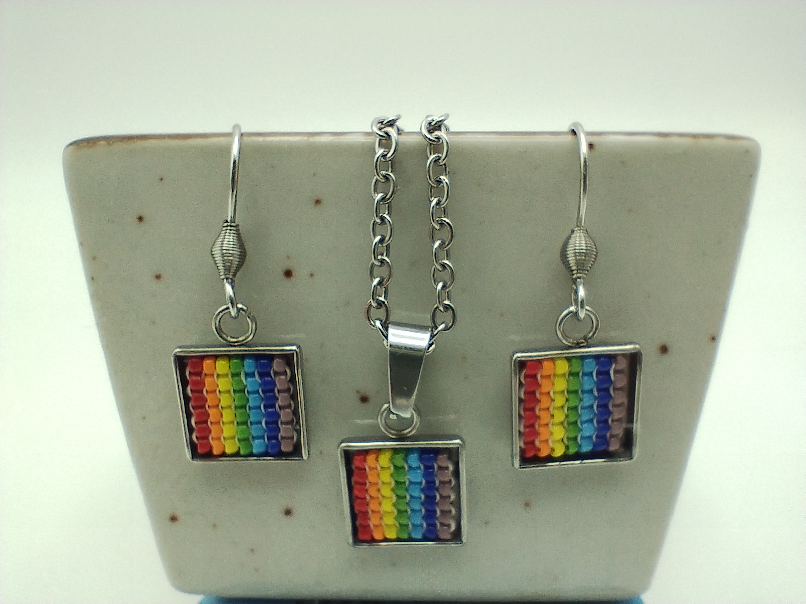 Inserții din mărgele fine cusute manual, toate cele 7 culori de curcubeu.